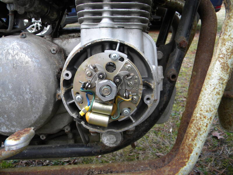 Yup - same bike! The rust I handled with Brillo pads, wire wheels and elbow grease, and of course went over the engine with my vapor blaster - the only thing that's painted on that engine is the case itself, which is of course hidden behind that side cover/clutch adjuster.