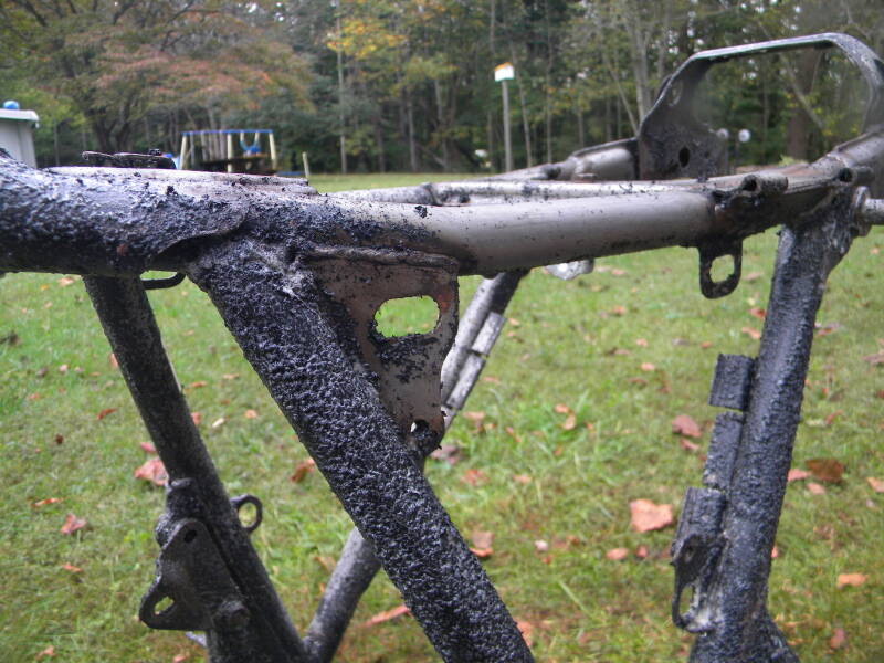 Here's the frame 'mid-strip'...I love doing it, but it Sucks at the same time. I like repainting MUCH better!