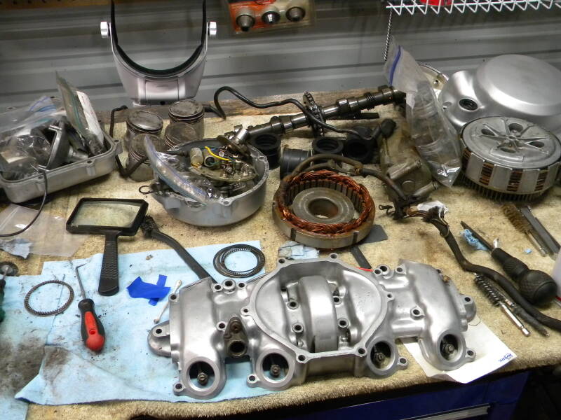 It was probably related to the 1972 JDM Honda CB500 Four in the garage I’m trying to get rebuilt after getting rudely interrupted by winter, which arrived here last November just as I had taken the bike apart and left everything on the bench because it was too damn cold in the garage – so I was up early, dewy with anticipation about getting back out there and getting my hands dirty after getting started yesterday, when I finally got pulled back into the orbit of the garage and managed to get some stuff done.