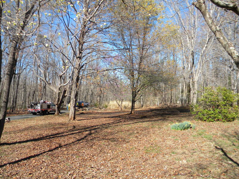 As you can see in the pics, the fire came close to the house, but it's okay. Eventually the fire department did show up and hosed it all down, and we got the power back on at midnight. Apparently, when the tree in front of the house came down, it pulled the wires down but didn't snap them, instead it pulled down a pole up the road; how the fire started in my yard I'm not entirely sure about. I'm just glad it didn't make it into the woods - that would have been crazy!