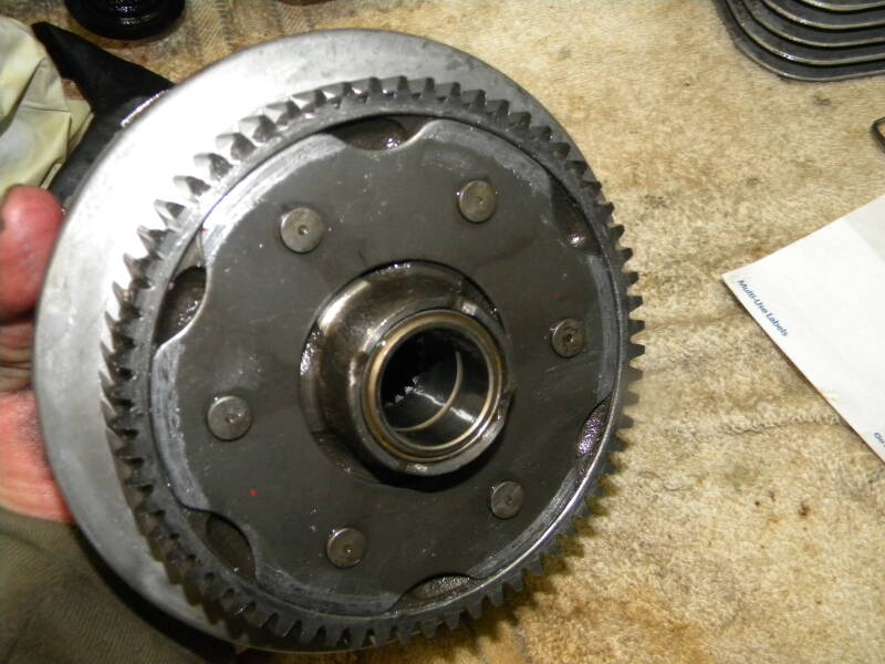 Now go back up and look at the bolt...notice anything? Yeah, because I neglected to make sure that bolt was seated correctly, it stuck out just enough to rub the back of the clutch basket! Oh, it looks worse than it is - no harm done - but I'm sure that was contributing to the noise too. Egg on my face much??