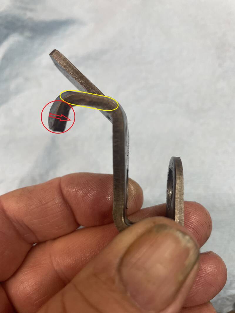 What I did was, I took out the kick starter 'stay' and simply re-bent it back to where it should be - in this picture below, I put this piece in a vise and gently tapped the area circled in yellow flat first, then tapped the red part back to a more vertical position.