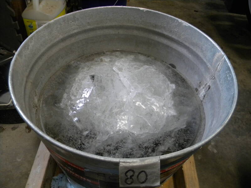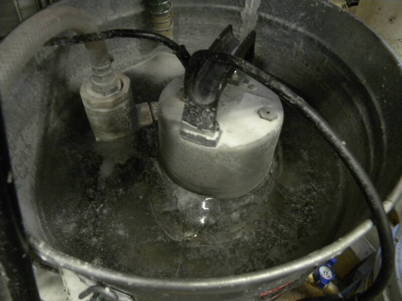 Yes, ladies and gentlemen, that is all the frozen ice in the vapor blaster bucket that holds my water pump, pushing its way through the bottom of a ten-gallon steel pail! And No, I'm not tilting it back to show you, that's the ice bulge pushing the bucket off the floor. FUCK!