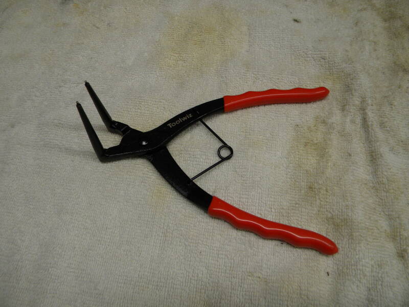These little jewels can be found on Amazon, Toolwiz makes them. The come in real handy for replacing front brake hydraulic reservoir pistons. You can see the little nubs on the end of the jaws that fit the circlips that lurk in the deep, dark recesses of the piston and makes it a helluva lot easier to get them out - and IN! They run about $12 on Amazon.