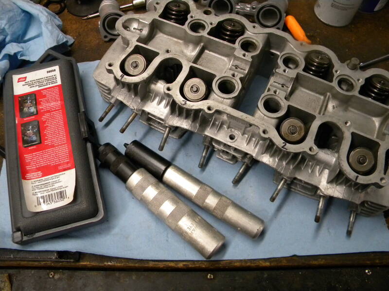 To install them, you place the keepers in the little 'well' around the valve head, stick the other end of the tool into the silver part and once again whack it smartly with a BFG; that little pointed nipple there on the black part forces the valve head down and inserts the keepers! It takes a little practice, but once you get the hang of it you'll wonder how you ever lived without it. I can take out and install all the keepers in minutes, rather than using the regular screw-type valve compressors. Costs about $30 on Amazon.